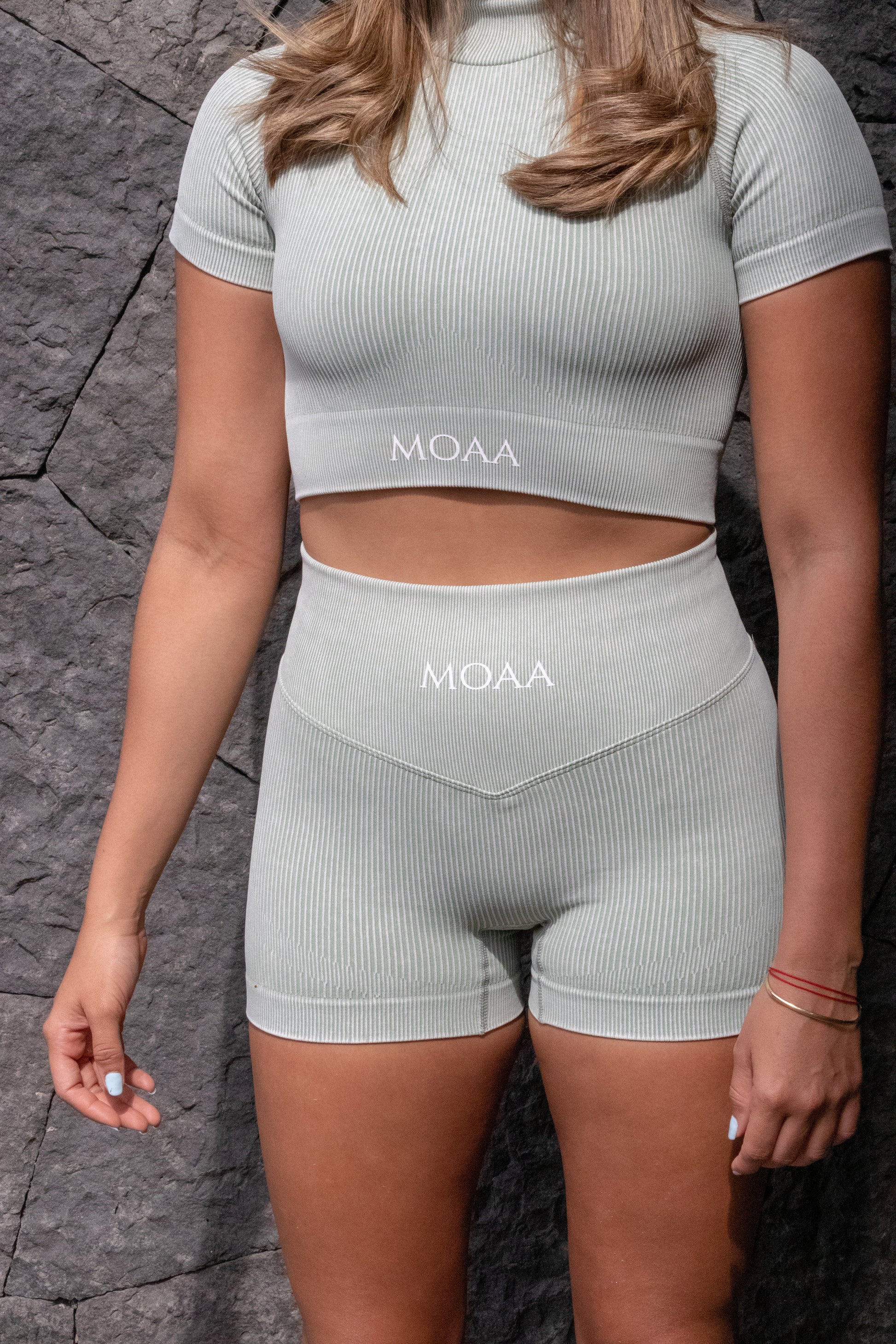 Explora la comodidad y el estilo con el SET OLIVE de MOAA Active Wear, diseñado para adaptarse y realzar con su tono verde suave y diseño contemporáneo. Perfecto para el gym o un look casual chic.